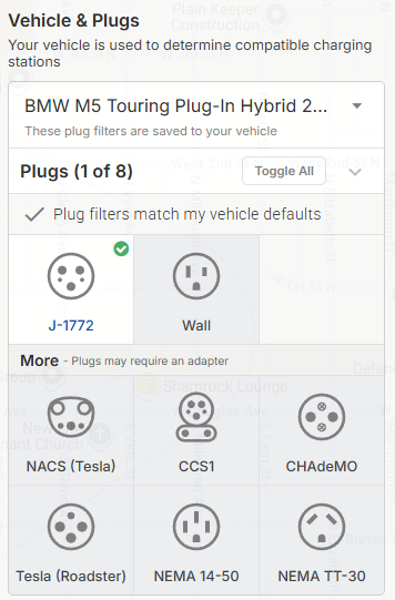 With your vehicle tied to your account, you should not need to adjust the plug filters. Our system will automatically filter plugs compatible with your specific vehicle, making it easier for you to find a location for your needs.