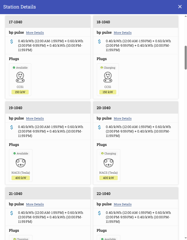 | Note: You will not see these details if power data has not yet been verified in your region. We continue to work with international networks to access more official feeds, so we will continue rolling this out to other regions as we obtain the necessary power data information for charging locations around the world. |