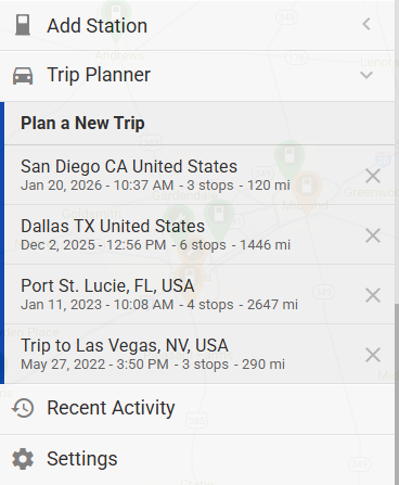 Important note: At this time, trips cannot be created, edited, or deleted on PlugShare's Android app or on plugshare.com using a mobile browser (a screen less than 1200px wide). Please make any edits using a desktop browser or our iOS app, and then access the updated trip on your device.